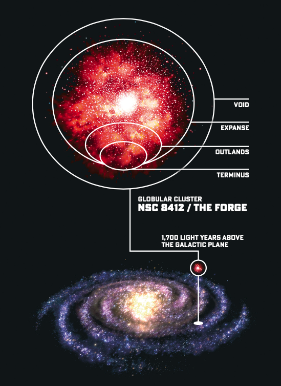 Hundreds of years ago, humans fled a cataclysm in their home galaxy, and migrated to a globular cluster 1700 light years above the galactic plane.  They called the cluster the Starforge, or simply the Forge.